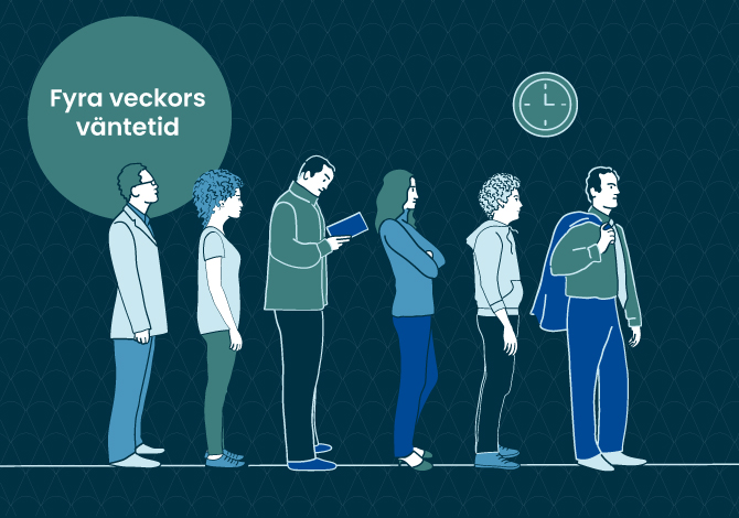 Väntetiden varierar mellan a-kassorna. Under de tre första kvartalen 2025 väntade hälften dem som fick arbetslöshetsersättning upp till fyra veckor på sin första utbetalning.